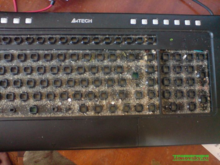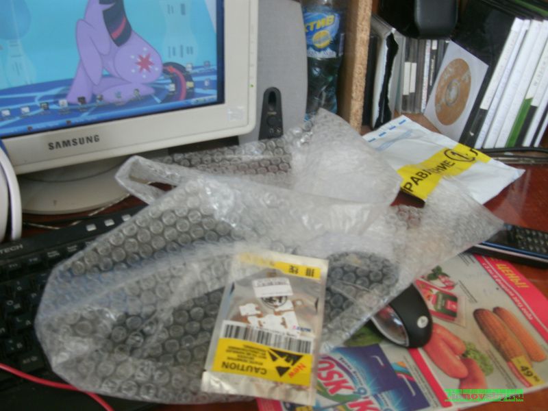 Как и обещал магазин, пришла ровно 20 марта, а отправилась 13.03 с Томска. Теперь- убитая влагой клава заменена, а на её место воткнута новая. Обошлась в 350 рублей, заказывал в //sotland.ru . Ещё они не пожалели пупырчатого поэтилена, пришёл кусок 10x200 см, теперь можно вдоволь порасслабляться. Кнопки отлично нажимаются, на телефон я больше не матюгаюсь. Кайф. ![]() P.S. Фото- дерьмо, знаю. Я забыл включить режим "макро". |