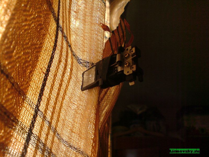 Утреннее солнце осветило экран монитора. На экране было ничего не разглядеть. Задёрнул шторы, но солнце предательски светило в узкую щель между ними. Решение- защемить её прищепкой. Но что делать, если прищепка в другой комнате? Взять головку от флоппи-драйва, что лежала рядом, надеть на неё резинку, и защемить шторы. Помеха устранена, можно работать дальше. |