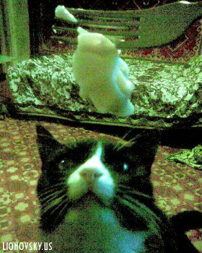 Опять моё котэ. На этот раз с пельменем. Фотожоп не применялся.